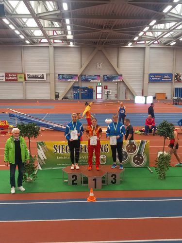 Manja Groß konnte sich in der W45 über Gold im Diskuswerfen und über Bronze im Kugelstoßen freuen. Ihre Vereinskollegin Nadine Beck sicherte sich den Vizemeistertitel im Kugelstoßen in der W45. Laura Herrmann holte sich in der W35 nach einigen Jahren Wettkampfpause den Landesmeistertitel im Hochsprung – im 60m Sprint wurde sie 2.